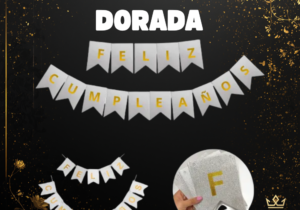 AgotadoBanderín Feliz Cumple Blanco letra dorada con glitter x 1 unidad