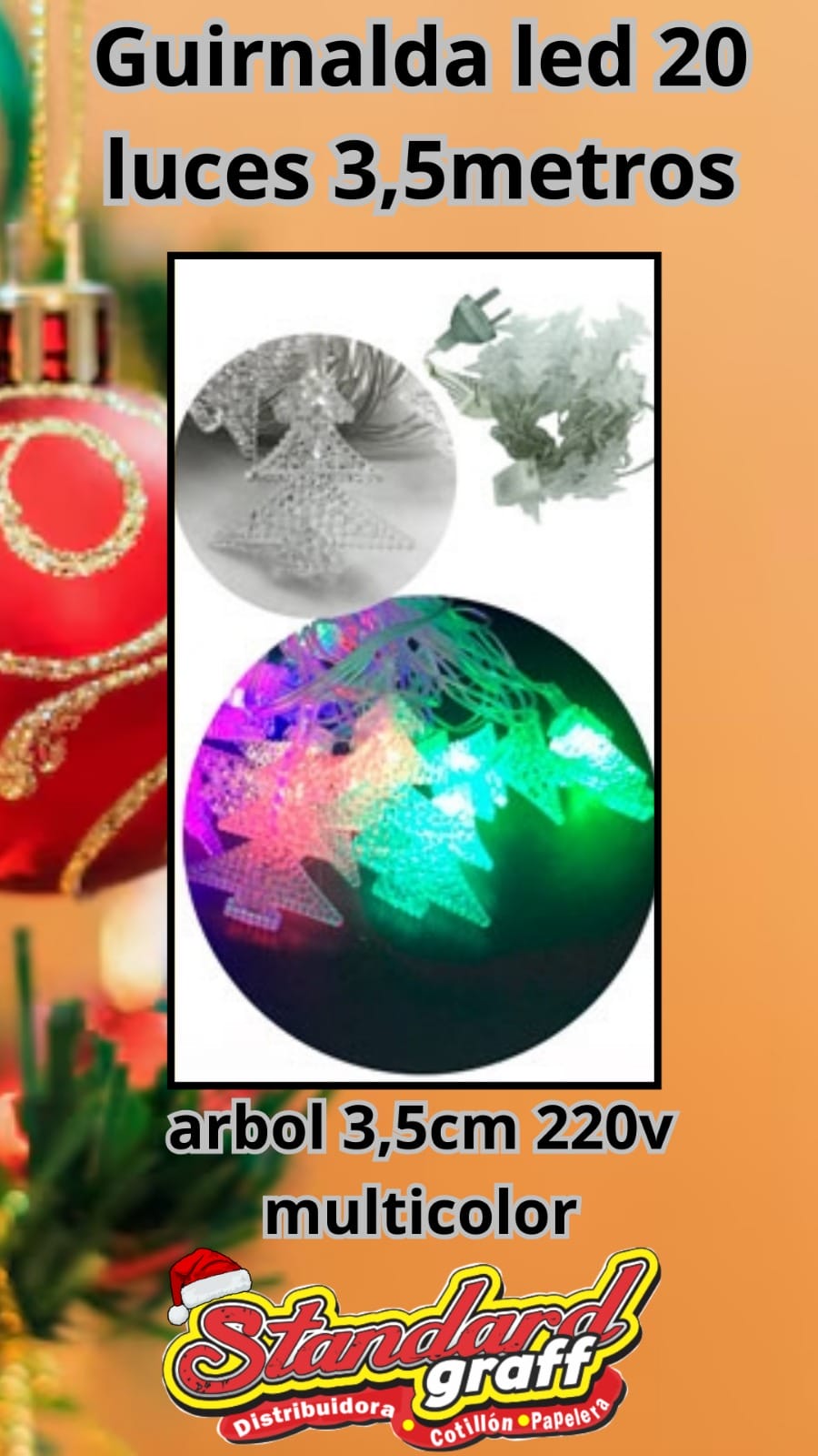 Guirnalda led, 20 luces árbol de 3,5cm – multicolor CategoríasBanderas Banderines/Cortinas Bazar Bengalas Bolsas Cajas Carteleria y Señalizacion Descartables Dia de la Madre Fajas Fluo Adhesivas Globos Globos numero Halloween Navidad y Año nuevo Pascuas Reposteria San Valentin Stickers Tarjetas Telgopor Varios Velas Viruta Sin categoría Guirnalda led, 20 luces árbol de 3,5cm – multicolor$2.500 AgotadoSin existencias Categoría: Navidad y Año nuevo Productos relacionados Caja Hologràfica con visor 14,5×14,5×19 – x5 $3.905 - + Añadir al carrito AgotadoBolsas Celofàn navidad 15×35 – x 25 unidades $1.105 AgotadoAdorno puntal estrella calada roja 10cm $275 Imagen corpóreo navideña en telgopor 35cm $5.610 - + Añadir al carrito